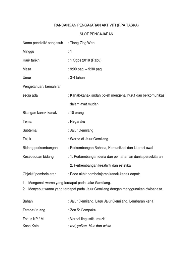 Rpa Ubi Docx Rancangan Pelaksanaan Aktiviti Rpa Kurikulum Permata Negara Tarikh Hari Masa Umur Bilangan Kanak Kanak Tema Tajuk Aktiviti Bidang Course Hero